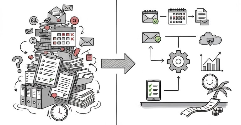Dein Tag ist voll: Mails, Nachfassen, Termine, Ablage. Während die Konkurrenz schon automatisiert, sitzt du noch im Büro fest. Mit schlanken, smarten Abläufen holst du dir Stunden zurück, senkst Fehler und machst den Betrieb einfacher – damit du dich auf das konzentrierst, was Geld bringt.